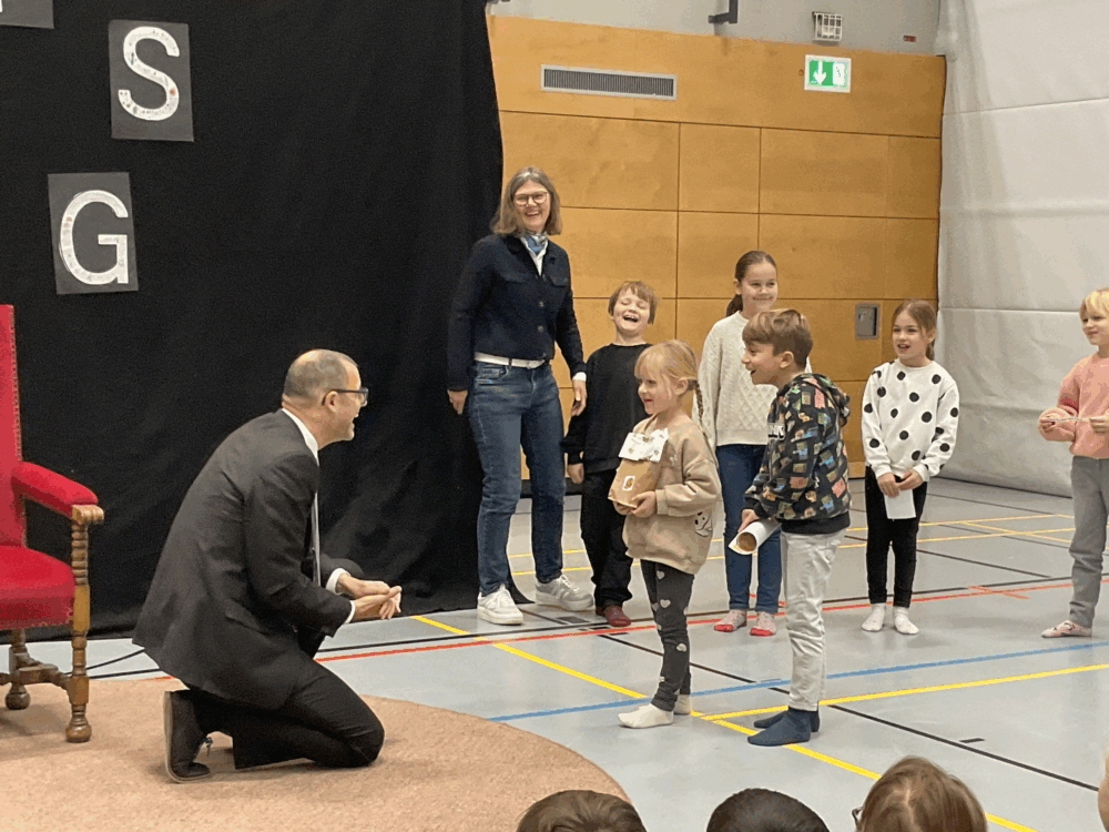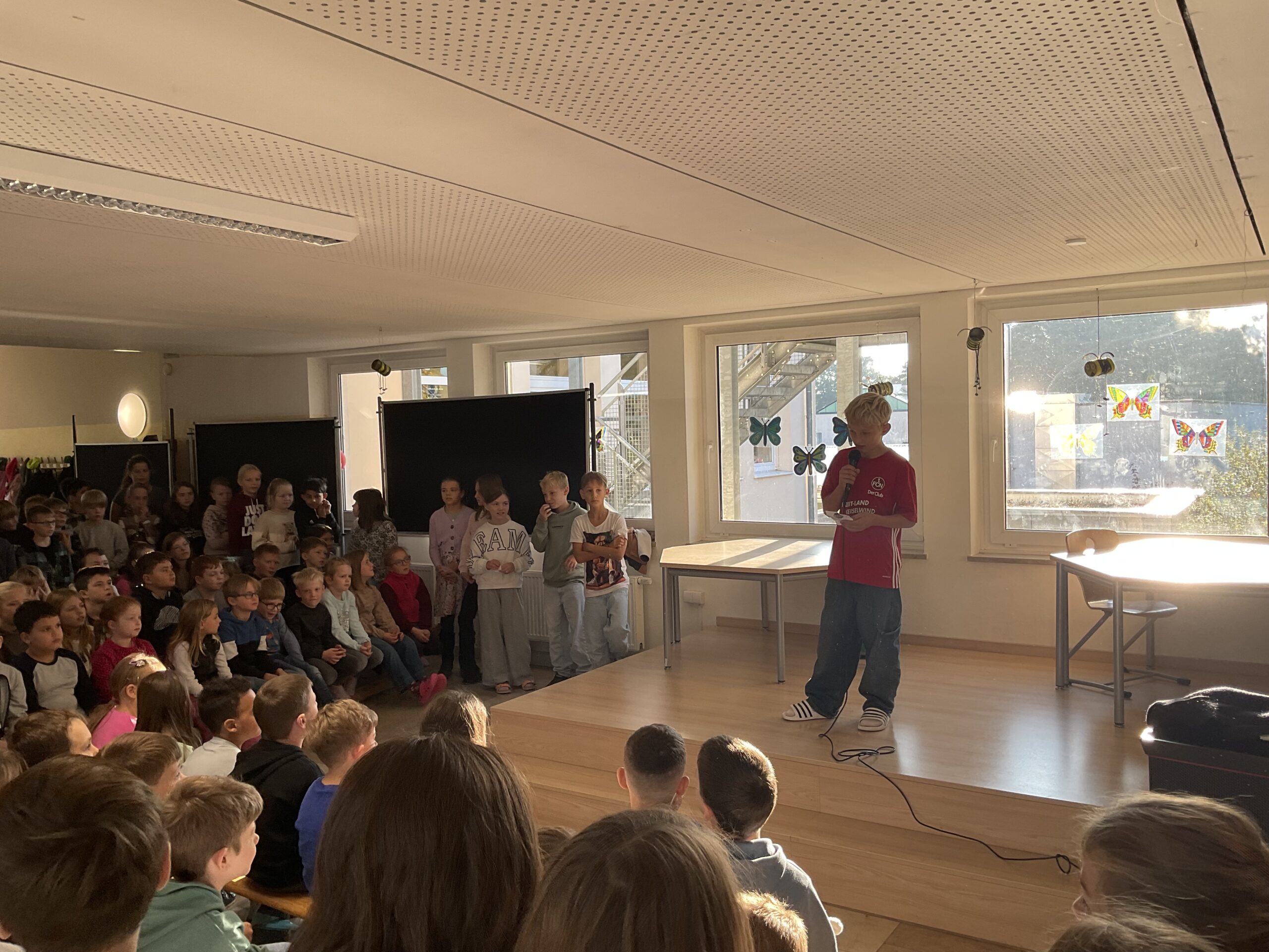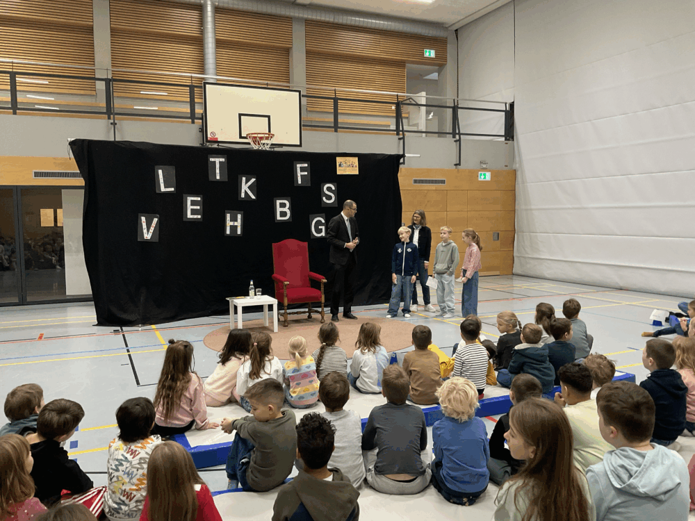 Am bundesweiten Tag des Vorlesens wurde es in der liebevoll gestalteten Turnhalle der Grundschule Wendelstein besonders feierlich. Nach einer herzlichen Begrüßung durch unsere Schülersprecher und unsere Schulleiterin Frau Eurich stimmten alle Klassen gemeinsam ein Lied an und eröffneten so den besonderen Vorlese-Vormittag.